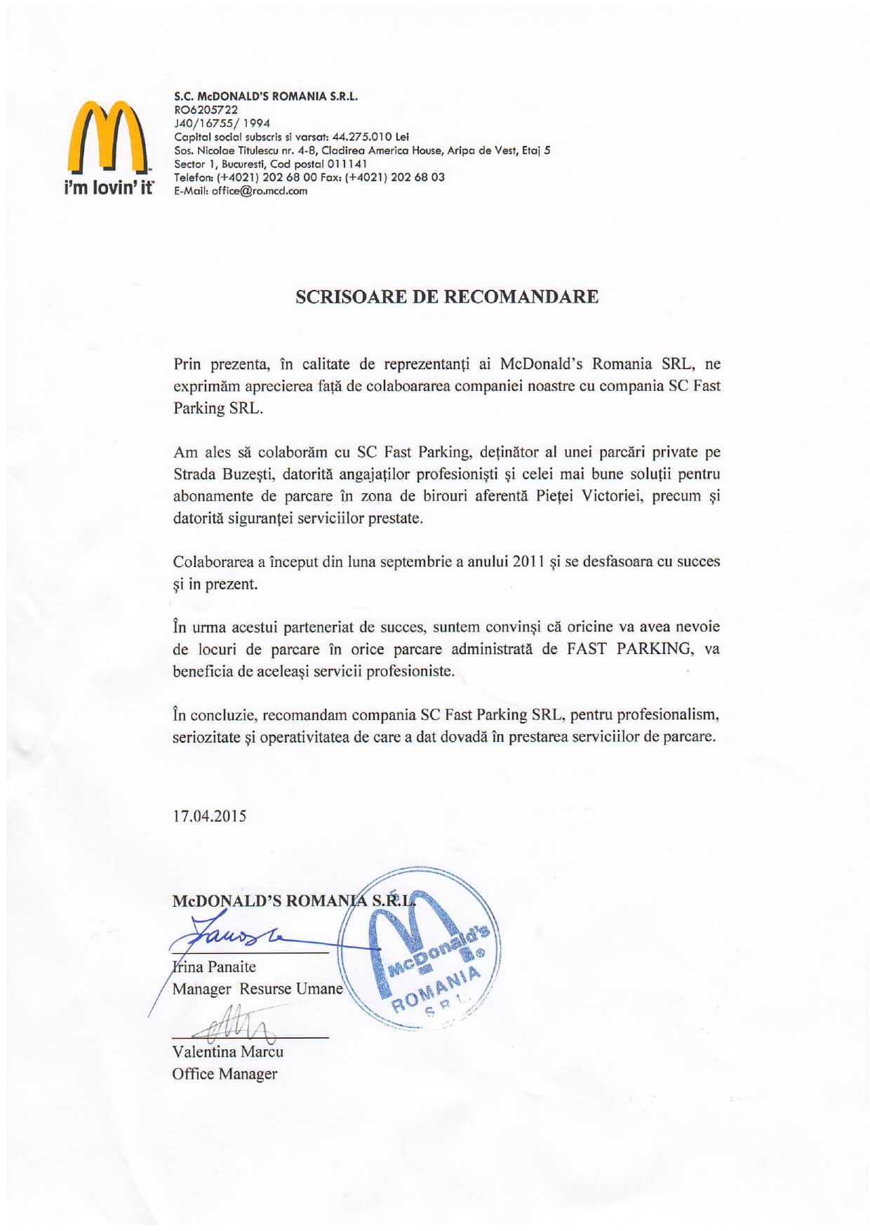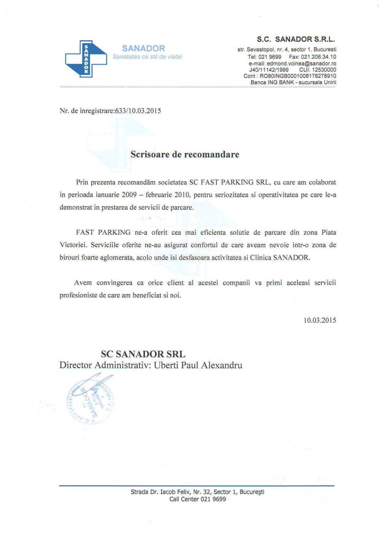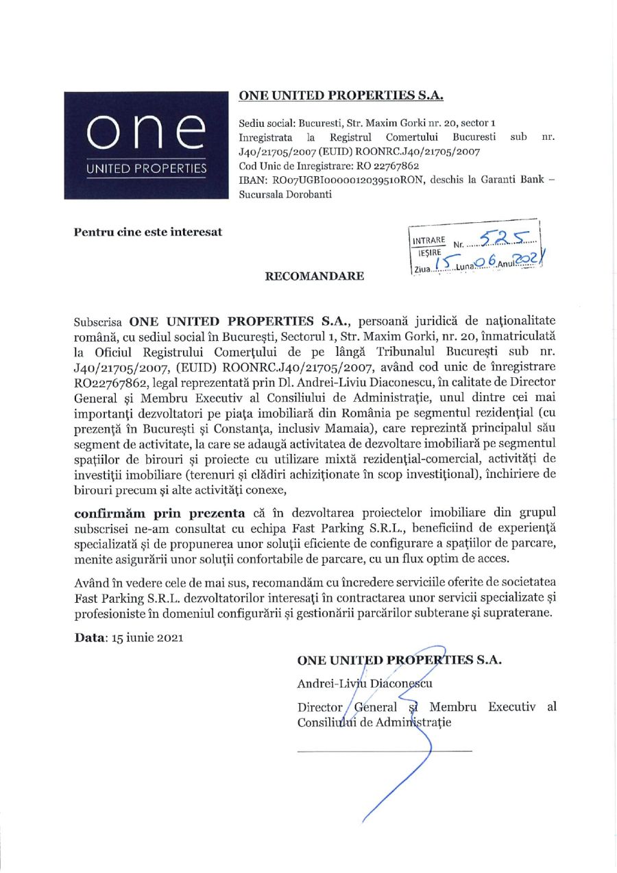 Amenajam si operam parcari auto si de TIR Parcare Buzesti/Dr. Sergiu (Spital Sanador/Medlife) Parcare Caramfil (Regina Maria/Ponderas/Retina) Zilnic parcarile noastre sunt folosite de peste 500 de clienti ocazionali si abonati. Servicii Acces cu jeton/tichet Bariere automate Paza non stop Supraveghere video Iluminat nocturn Recomandari Clientii nostri ne recomanda Vezi lista completa de recomandari